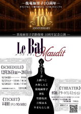 チケット予約・お問い合わせ Tel : 予約フォーム: HP : ブログ : Mail : X : https://x.com/tekkotsuborero へのリンク Facebook : ≪ お 話 ≫ 我竜麻里子復帰10周年記念公演 ![]() 『 Le Bal Maudit 』 作・演出/我竜麻里子 照明/石井智騎 音響・ギター演奏/ホソヤ 舞台監督・舞台美術/爲平康規(OUT of WIT) ビジュアル撮影/谷利沙紀 撮影/池村好美(タスカル) 広告デザイン・ロゴデザイン/大向しんじ 楽曲制作/Lalami 映像/我竜麻里子(我竜庵) 制作/我竜麻里子・灯鴉・池村好美 協力/Studio RING ・耀 ・kerryz 出演/我竜麻里子・上原ぺこ・やまもとしほ・三咲はる・竹原名央 平田めりっさ・大向しんじ・寿々木はるか・有佐美ひより チケット 日時指定全席自由/前売り・当日共に¥4000(1drink付き)